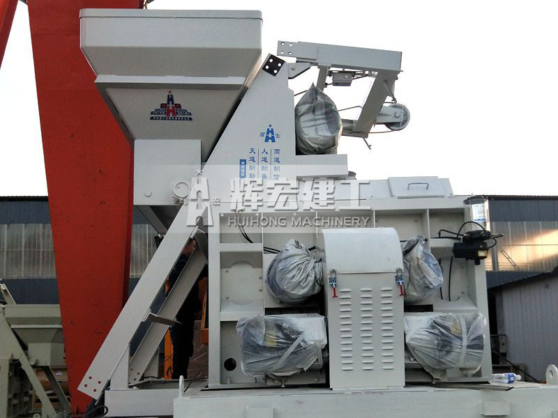 輝宏建工:它的進料機構由上料架、進料斗及提升裝置等組成,JS系列各機型的進料機構有所不同。 全自動JS500型機的上料系統由卷揚機構、上料架、料斗、進料漏斗等組成。